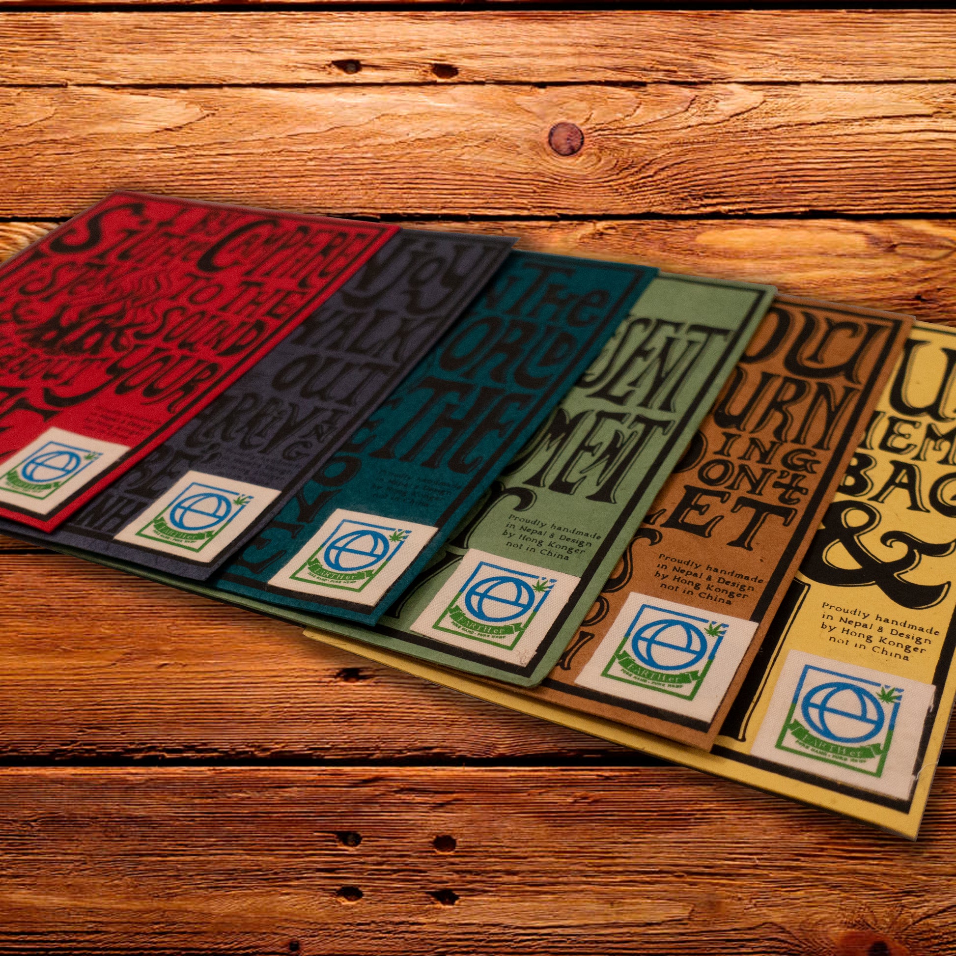 6 designs, 12 colours, made in Nepal with Lotka paper.