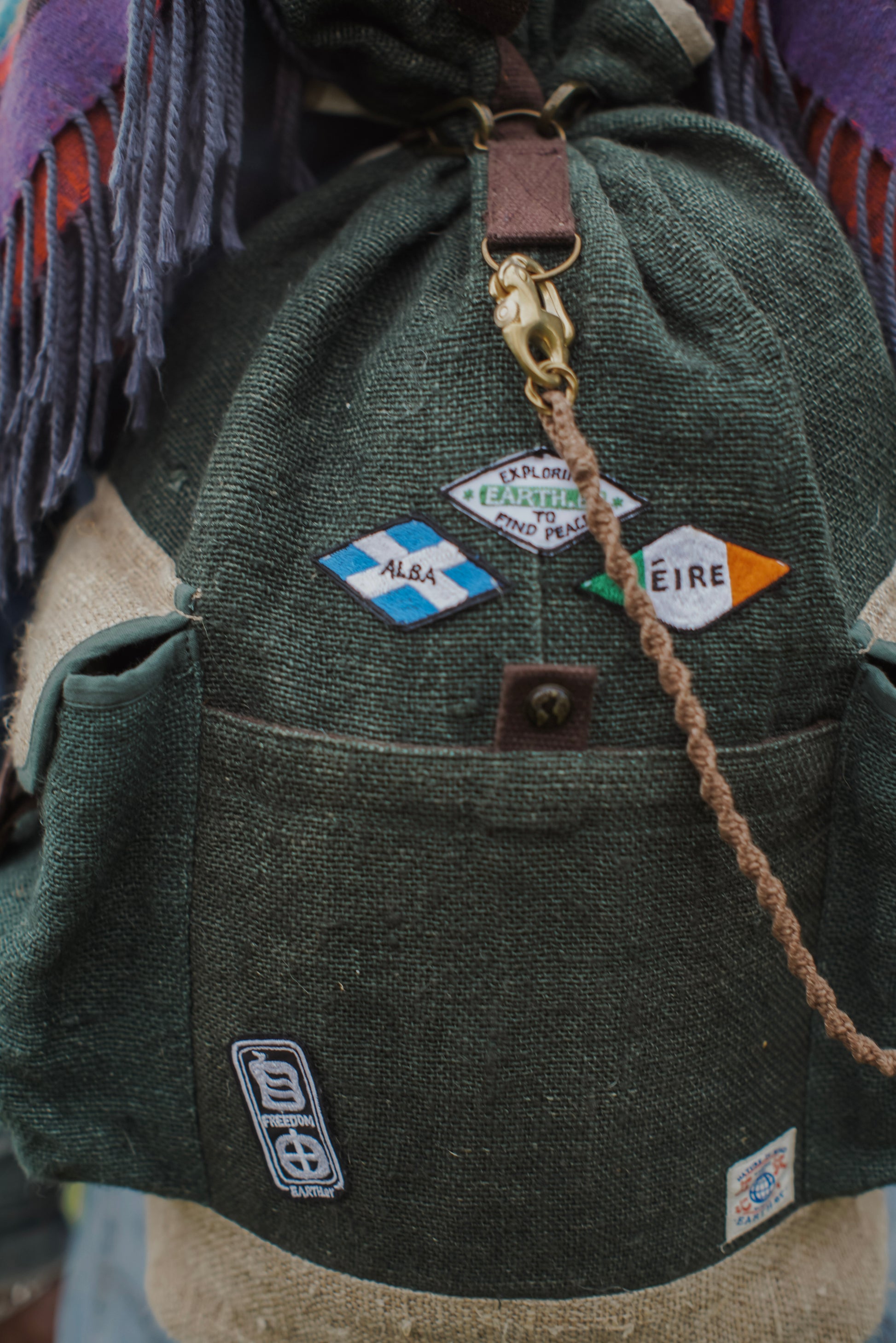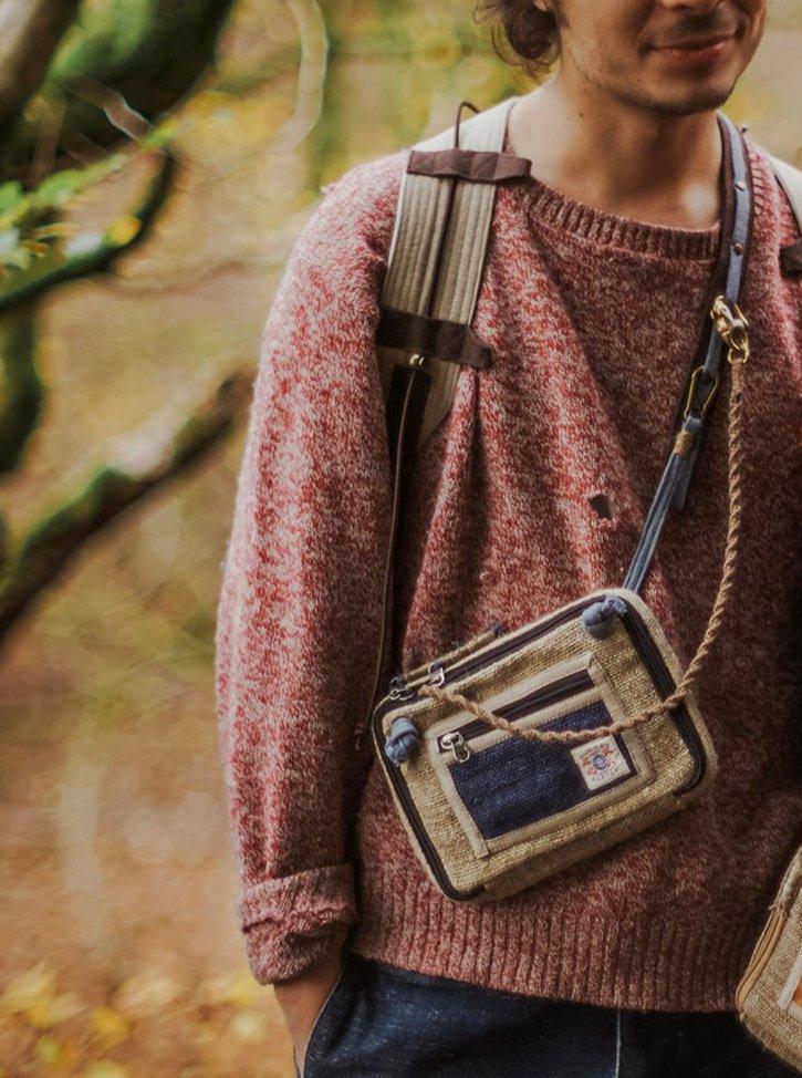 Made in Nepal by crocheting hemp fibres. Antique colour brass buckles to create a unique vintage look.