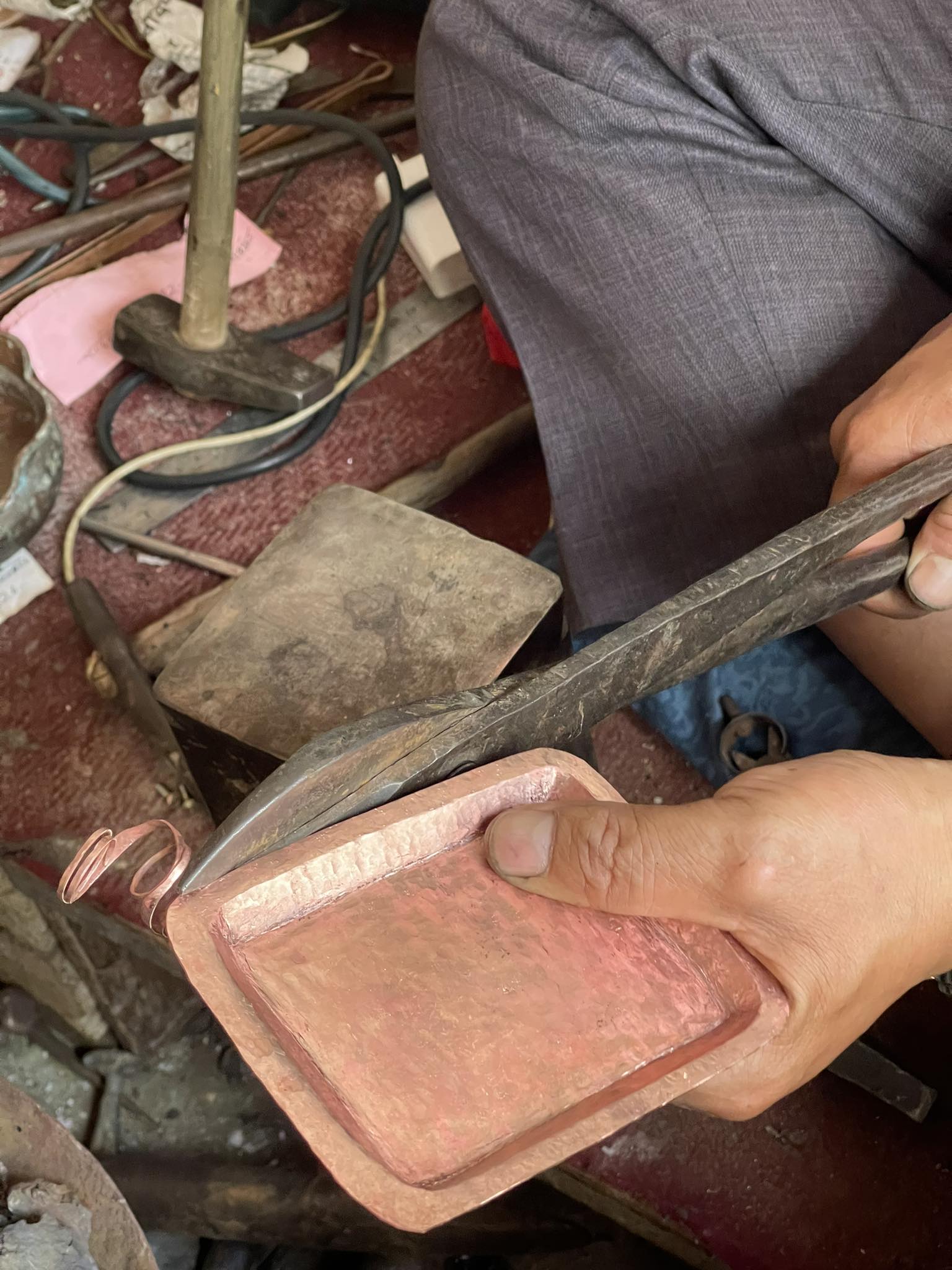 - A full set including a hand-hammed copper plate & a poking stick.